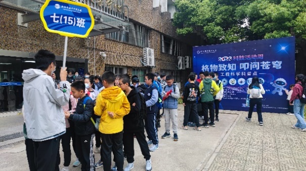 今年的科普活动主要面向中国科大附中以及合肥市部分高中学生,工程科学科普点100余名师生志愿者全天接待了约6000名观众。虽然伴随着微微小雨,但也难掩参观者高昂兴奋的热情,字里行间中都充斥着对科学知识的向往。在现场志愿者有效地组织和调节之下,参观者们均有条不紊地进入各个科普展区参观。