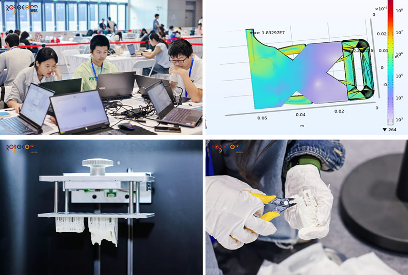 我校参赛队伍秉承“红专并进,理实交融”的校训精神,在叶回春、胡衍雷、刘志刚等老师的悉心指导下,历经数月的精心准备与反复打磨。他们从课程所学的3D打印、反求测量等基础知识出发,结合对实际应用场景的深刻洞察,提出了独具匠心的创意方案。从最初的设计构想,到精确的建模与仿真,再到反复的打印测试与优化,每一个环节都凝聚了队员们的智慧与汗水。比赛现场,面对来自全国各地的强劲对手,科大学子沉着冷静、精益求精,充分展现了扎实的理论功底、精湛的实践技能和无畏的创新精神,最终赢得评委专家的高度评价。