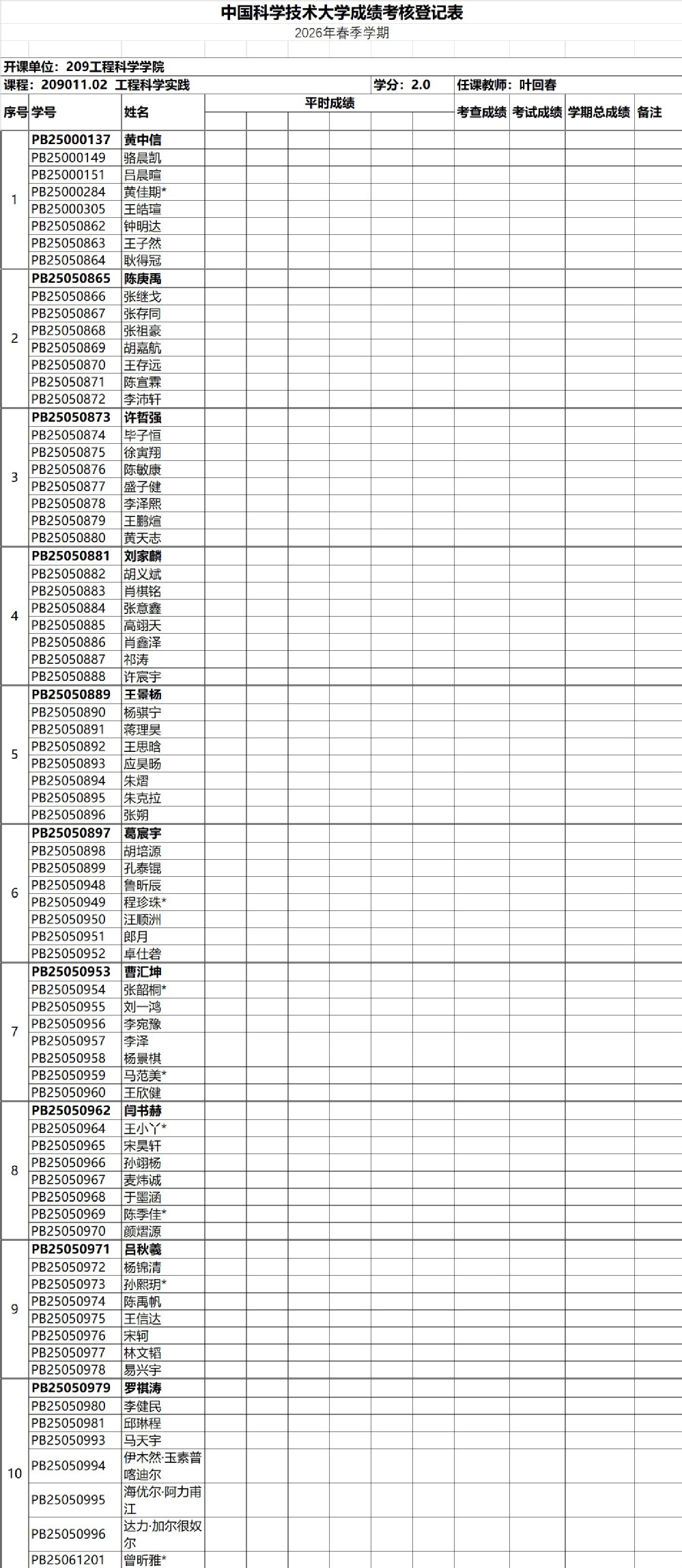 2026年春季学期《工程科学实践》周四分组名单