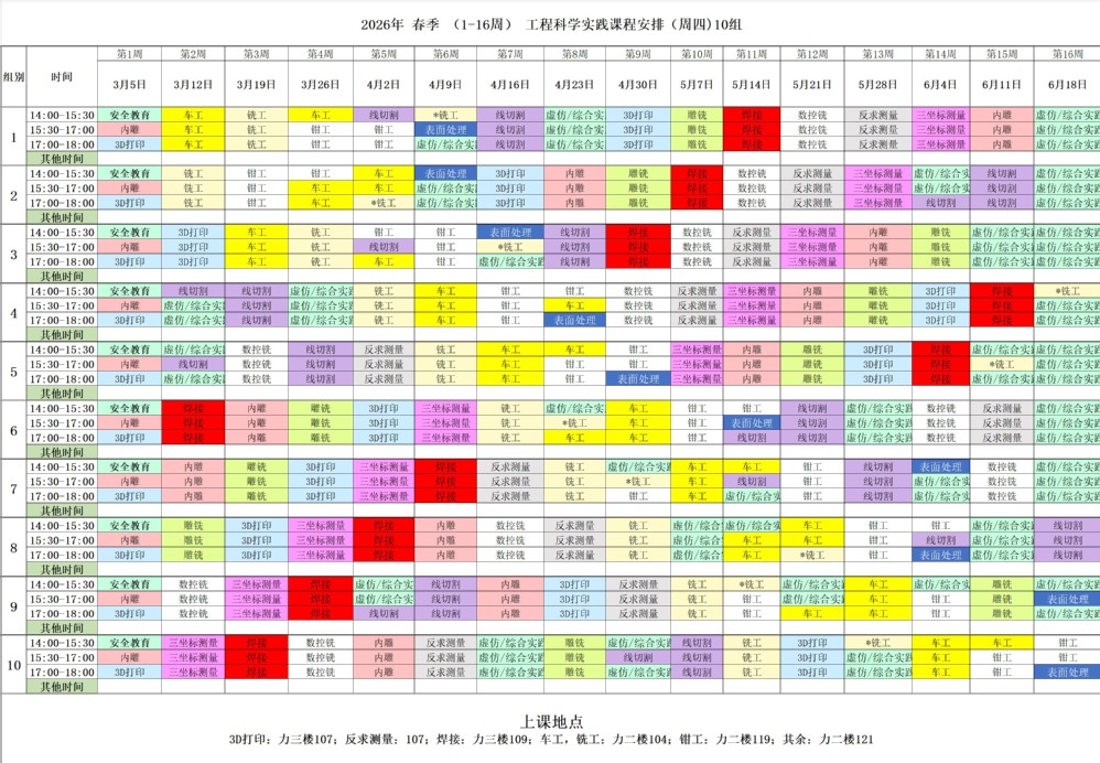 2026年春季学期《工程科学实践》周四课表