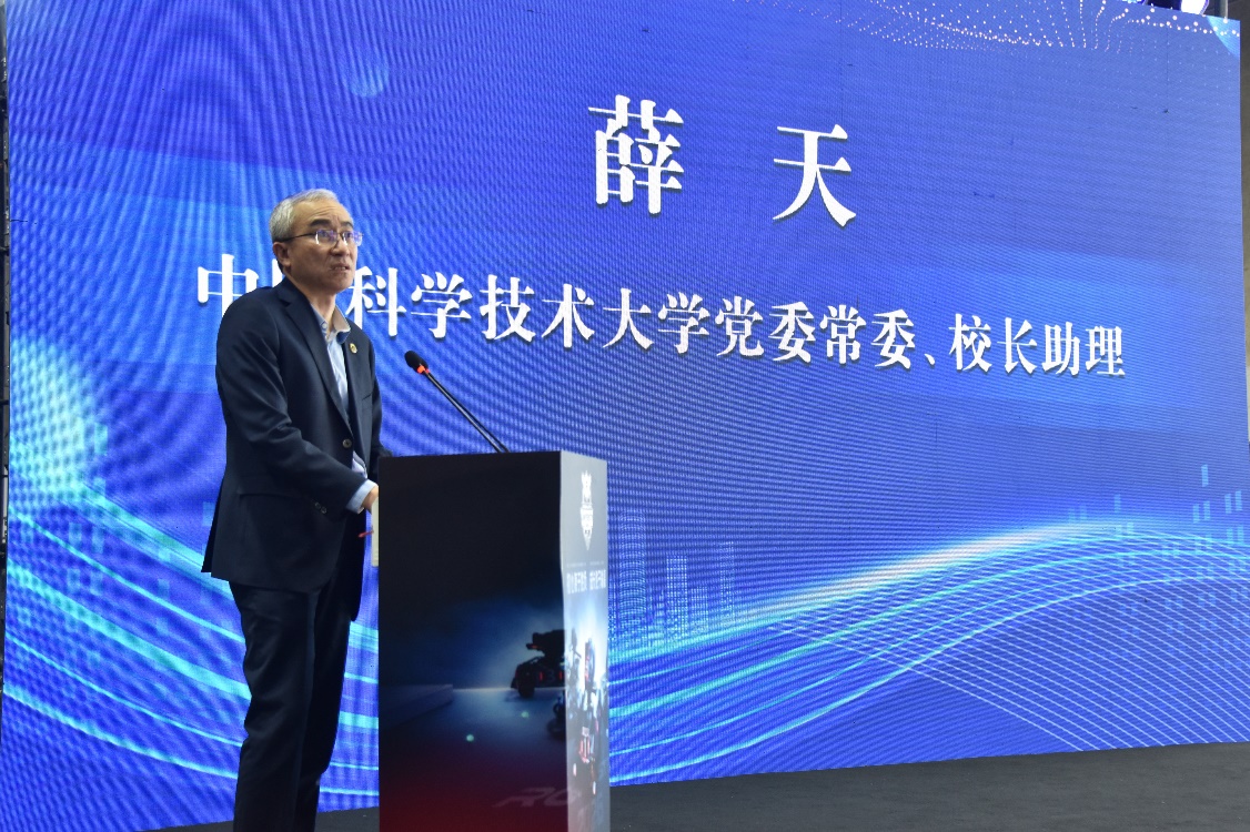 开幕式上,薛天教授首先发表致辞。他强调,中国科大始终高度重视创新人才培养和工程实践教育,努力把课堂学习、科研训练、工程实践和创新创业更好贯通起来。他寄语青年学子珍惜比赛平台,在实战中检验所学、锤炼本领,并胸怀理想,把个人成长融入国家发展大局之中。作为赛事的具体组织与承接单位,工程科学学院正是将RoboMaster 比赛作为集科技创新、工程训练和实践育人于一体的重要载体,致力于为广大青年学子提供一个展示自我、检验多学科综合能力与系统思维的顶级科创平台。